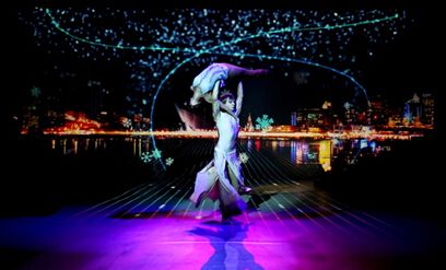 倒计时后,精彩的舞蹈表演开始,演员与影像形成一体,让表演极具艺术张力与科技感、时尚感。