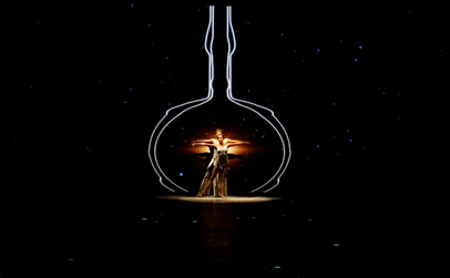 倒计时后,精彩的舞蹈表演开始,演员与影像形成一体,让表演极具艺术张力与科技感、时尚感。