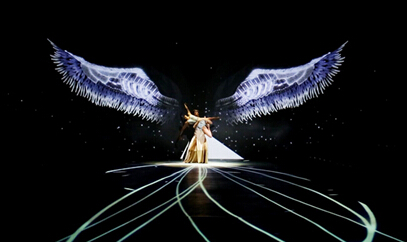 当一双巨大的翅膀在演员身后展开,当爆炸、粒子光效等特效随着演员的动作出现,仿佛演员的动作带动了影像。最后,雪片飘落的哈尔滨,焕发出耀眼的时尚之光,为开幕式起了切题点睛之效。